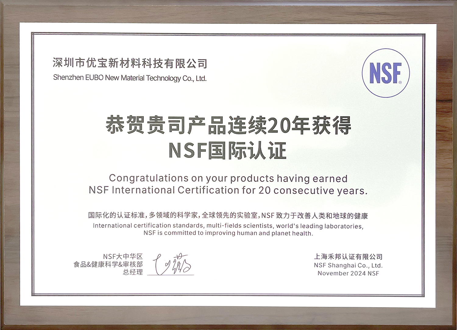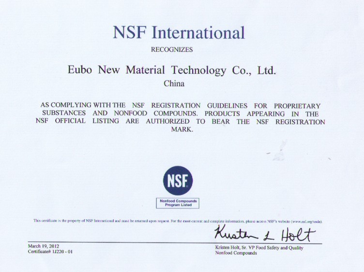 國內(nèi)第一家產(chǎn)品通過RoHS認證,美國NSF食品級認證