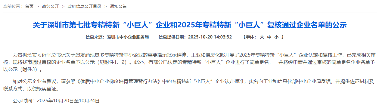 近日,深圳市中小企業(yè)服務(wù)局公布了